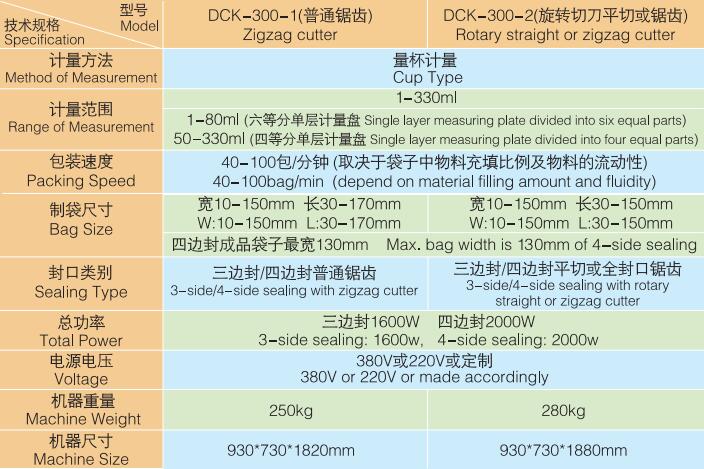 DCK-300-1/ DCK-300-2 平三邊封/四邊封顆粒包裝機